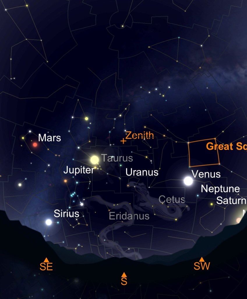 So, no, the planets are not aligned in syzygy. Odds are, they will probably never line up in such a fashion during our Sun’s expected life of about 10 billion years. They are, however, putting on a fabulous procession across our winter night sky, which you can enjoy just by stepping outside right after sunset, and following the ecliptic across the Southern sky.