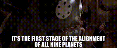Since these eight planets are moving at various speeds and across such vast distances in space, it’s not everyday that they will all be in a perfect line – or syzygy. On average, Mercury, Venus and Earth will line up about every 40 years, but the time increases exponentially for each planet we add to the equation beyond Earth. In the 2001 Angelina Jolie video game adaptation of “Lara Croft: Tomb Raider” the plot centers around a planetary syzygy that will imbibe the Illuminati with omnipotence via an ancient artifact. Tony Flanders of Sky and Telescope Magazine did some math, and calculated approximately once in 396 billion years for all eight planets to be within a 3.6° arc of a true syzygy. For comparison, our Solar System is only 4.6 billion years old. Let’s take it a little further. If the planets were within 1° of a perfect alignment, to of course aid the Illuminati in such a valiant endeavor, Tony determined we will be waiting about 13.4 TRILLION years. That is 1,000 times longer than our entire universe has even existed.